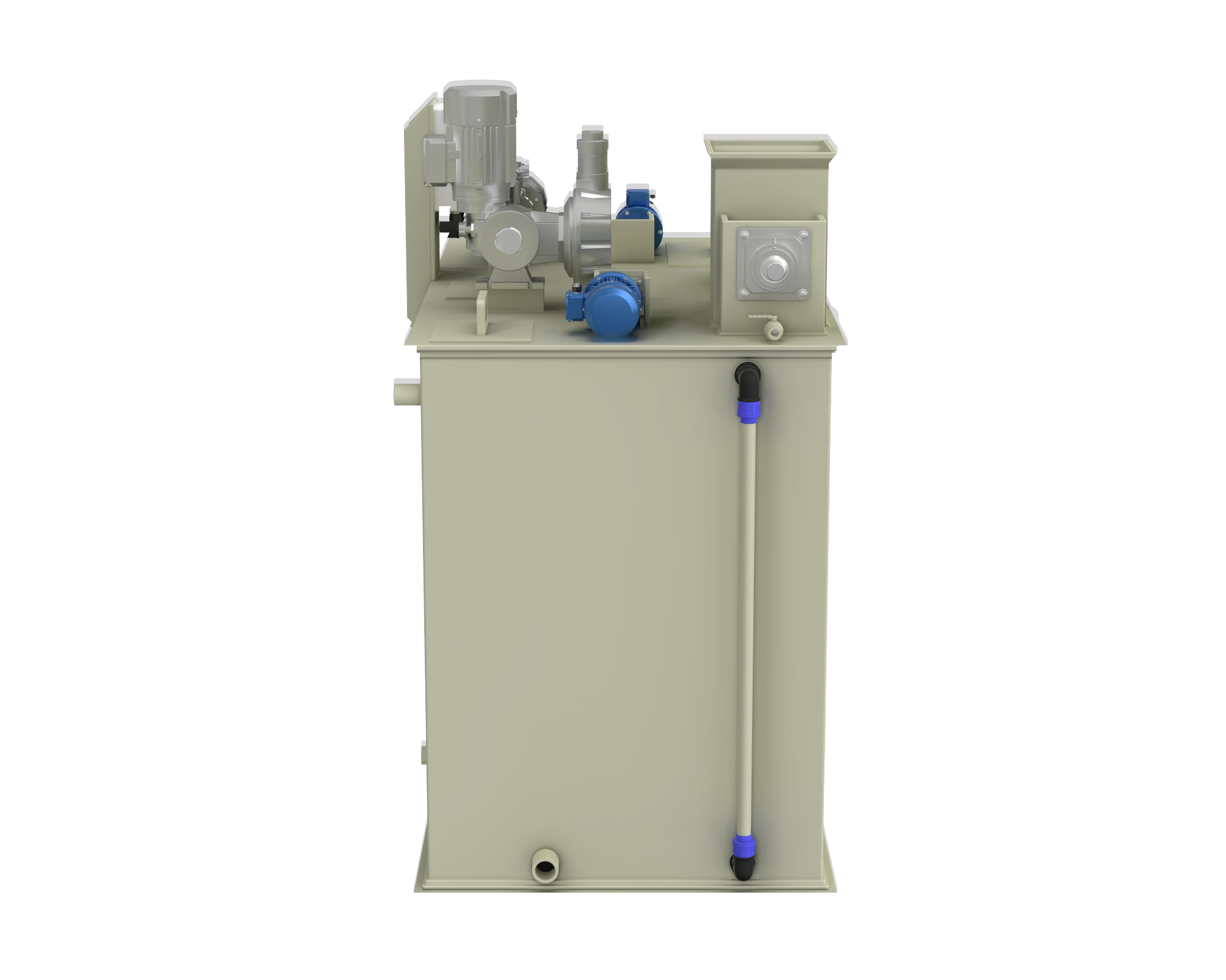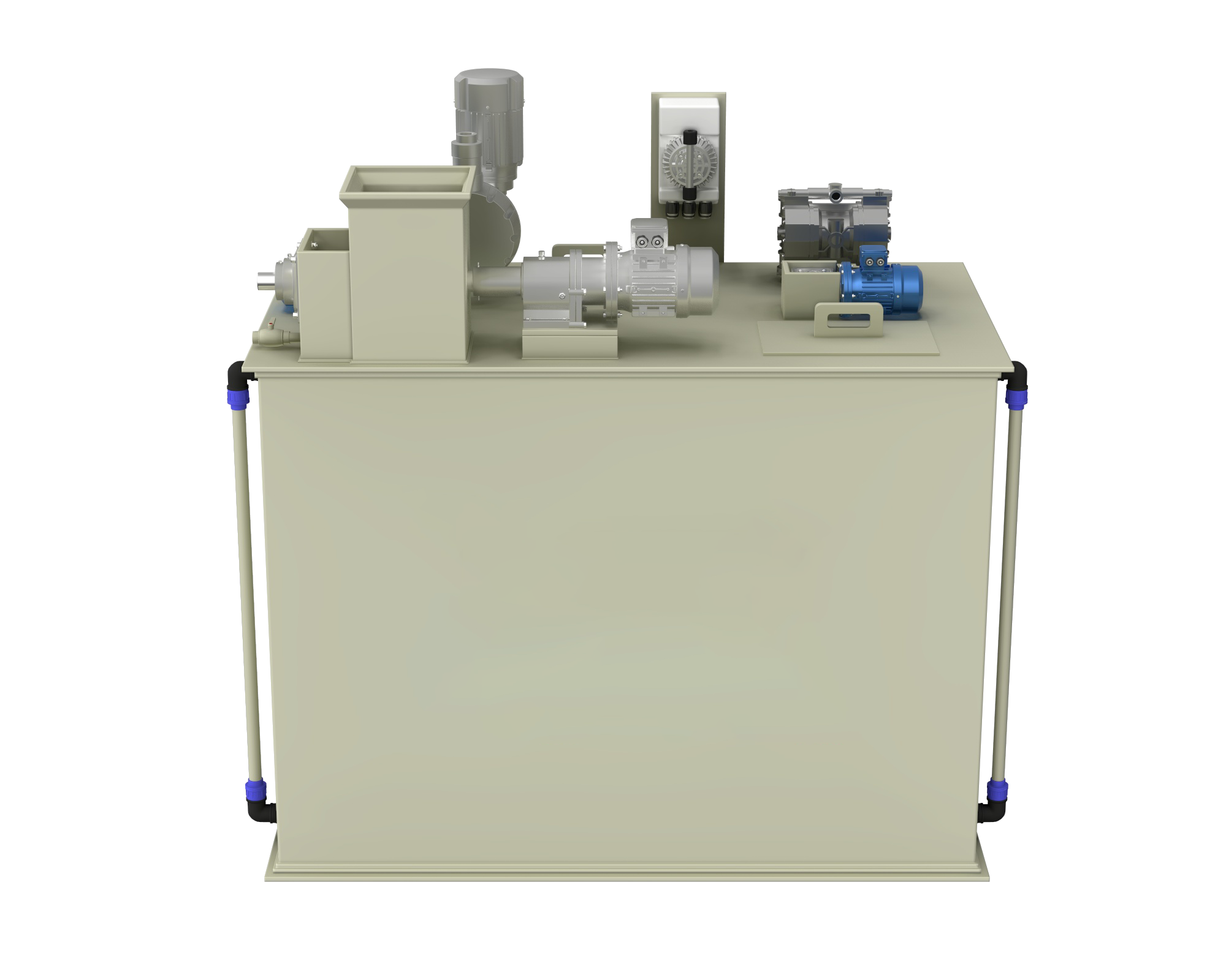 Автоматична полімерна станція — це обладнання, що складається з двох секційної ємності: розчинного та витратного бака розчину флокулянта. Розчин у безнапірному режимі послідовно перетікає з розчинного у витратний бак через переливні пристрої.