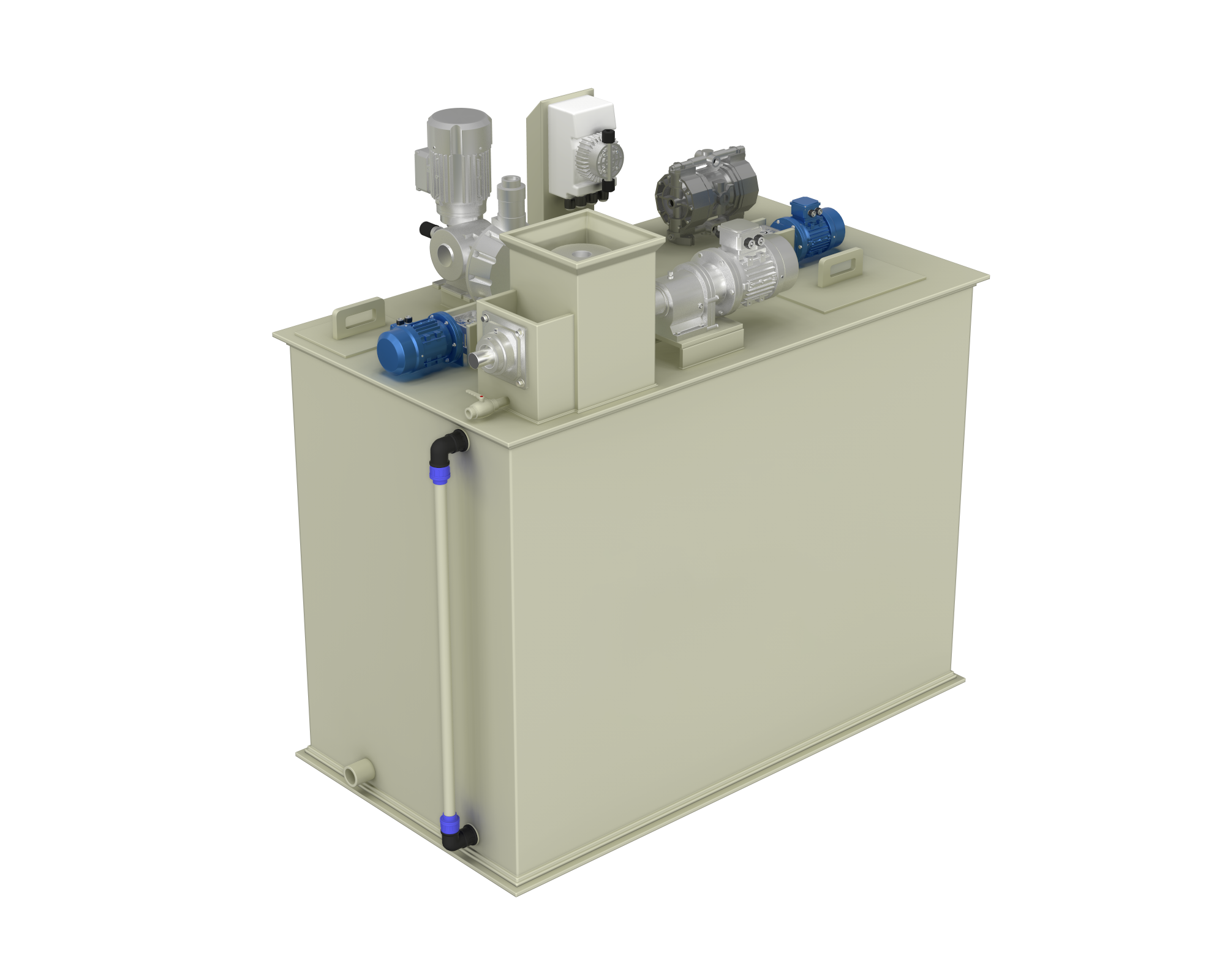 Залежно від необхідної концентрації розчину в камеру приготування вводиться певний об’єм води та сухого реагенту. Подача води здійснюється через автоматизовану систему запірно-регулюючої арматури.