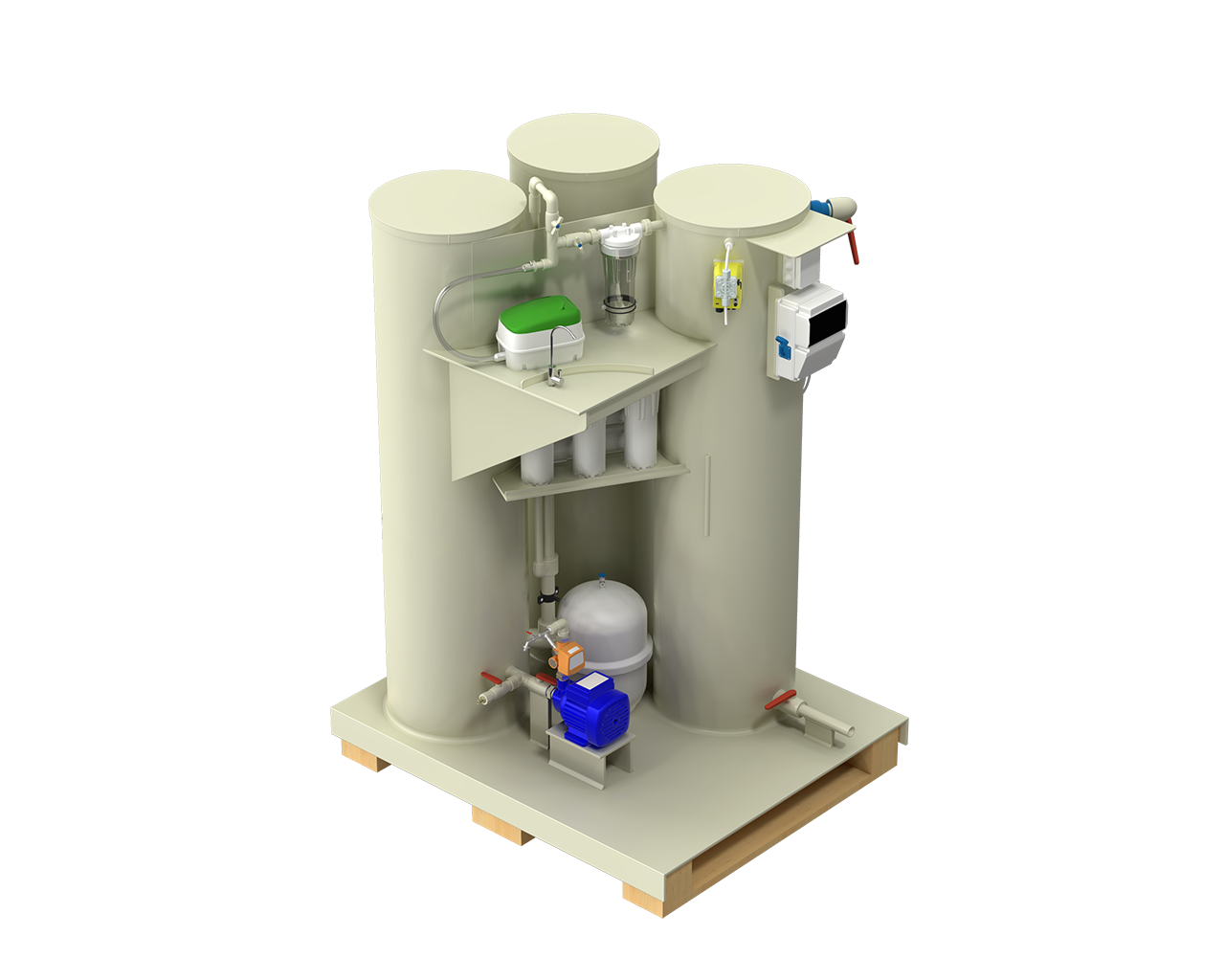 Станція водопідготовки поставляється максимальної заводської готовності, окремі елементи якої скріплюються легкими з’єднаннями та складаються з наступних частин: