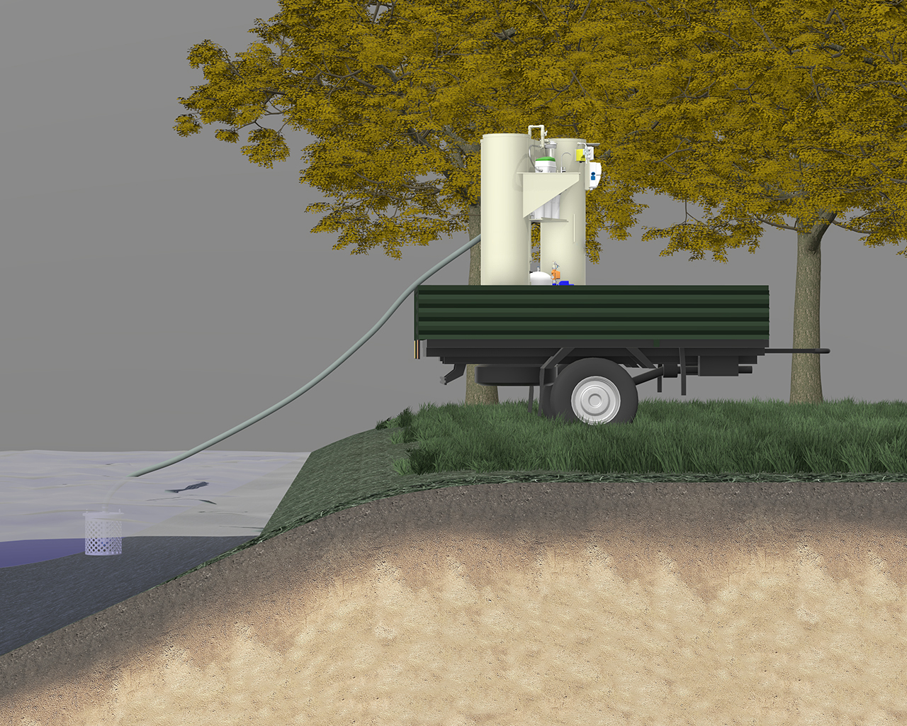 Забір води здійснюється з верхніх шарів, що запобігає потраплянню мулу в систему та зменшує завантаження на станцію. Фіксація водозабору здійснюється за допомогою тросу та фіксатора на березі біля водозабору.