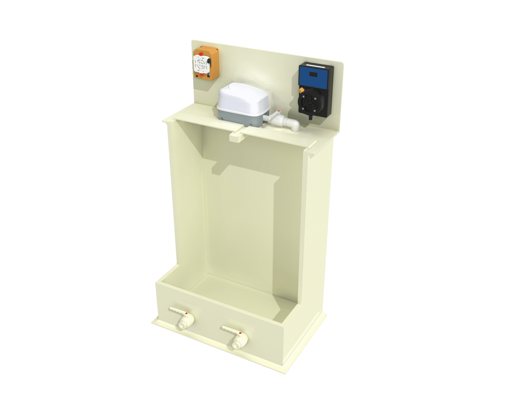 Бак реагенту заповнюють водою через систему подачі води та завантажують у неї розрахункову кількість товарного реагенту через завантажувальний люк. Для запобігання забрудненню готових розчинів завантажувальні люки оснащені герметичними кришками. Готовий розчин реагенту подається насосом-дозатором. Керування процесом дозування здійснюється в ручному та/або автоматичному режимі за місцем та/або віддалено. На всмоктувальній лінії встановлені сітчасті фільтри, що виключають засмічення запірної арматури і насосів залишками реагенту, що не розчинився, і випадковими включеннями Після випорожнення бака приготування необхідно приготувати наступну порцію розчину.